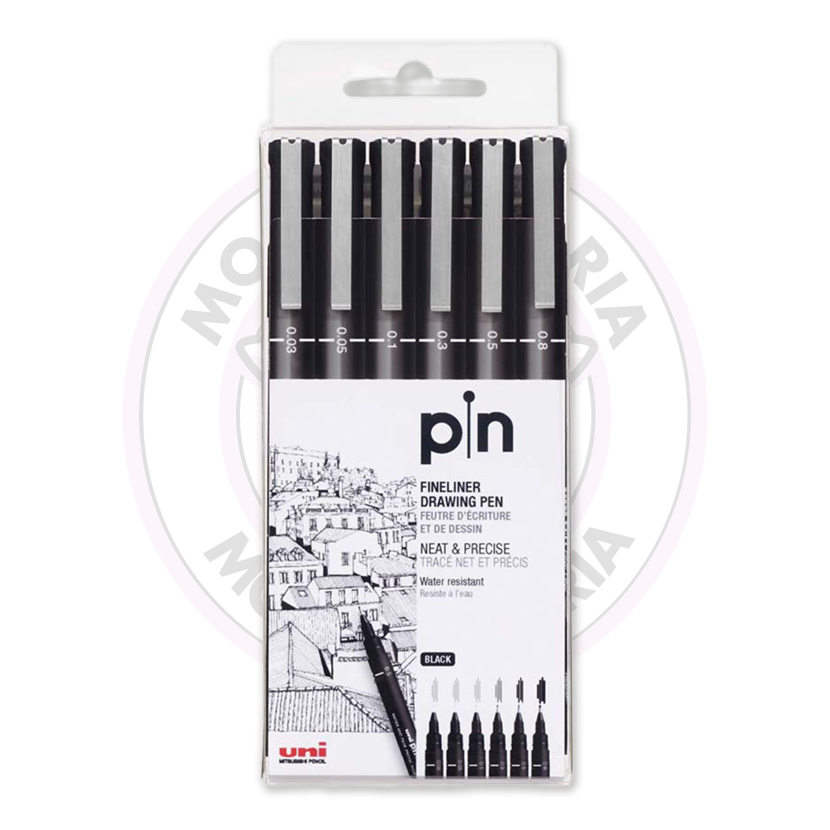 Conteúdo: 1 Estojo da Caneta Técnica Uni Pin Fine Line uni-ball – Preto – com 6 unidades.