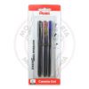 – 3 Caneta Gel Retrátil EnerGel Infree 0.5mm nas cores: Preto, Vermelho e Azul.