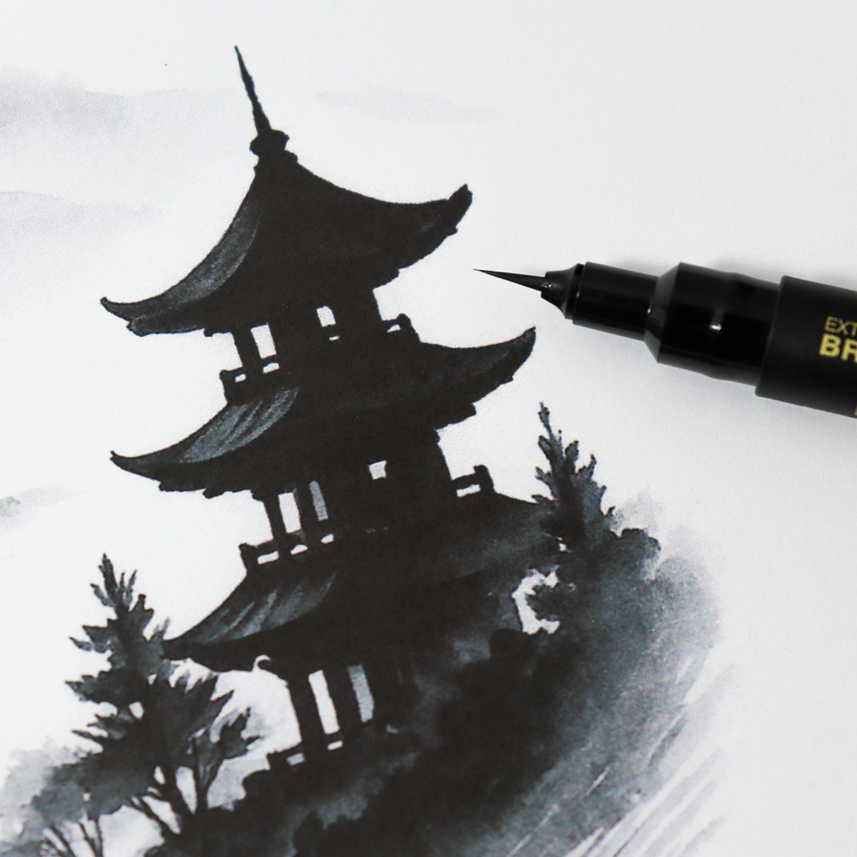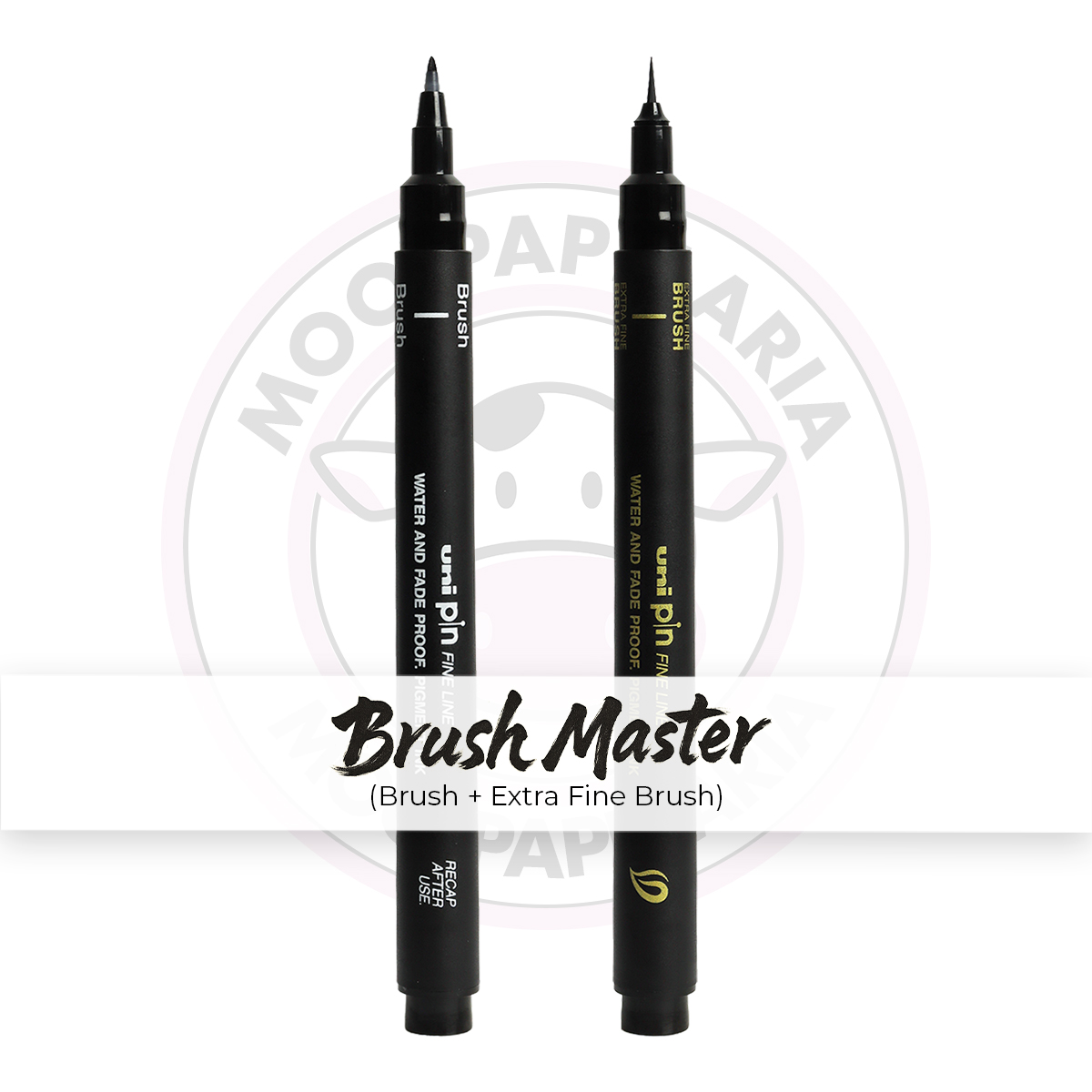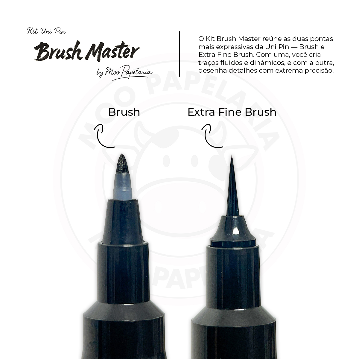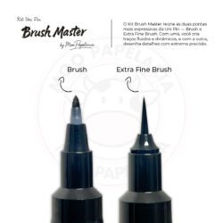 Conteúdo: 1 Kit da Caneta Técnica Uni Pin Fine Line uni-ball – Brush Master – Brush + Extra Fine Brush