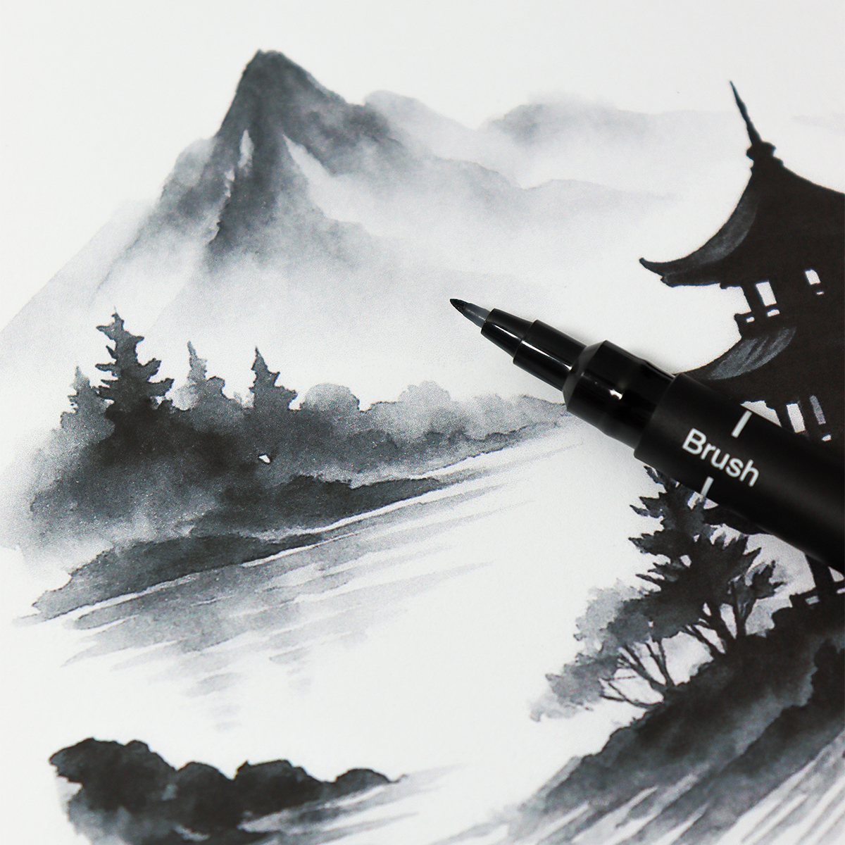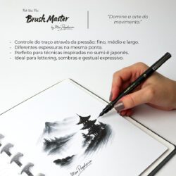 O Brush Master reúne as duas pontas mais expressivas da Uni Pin — Brush e Extra Fine Brush. A Brush tradicional permite criar traços amplos, fluidos e dinâmicos, com grande variação gestual. Já a Extra Fine Brush, ponta premium e raríssima no mercado, oferece controle extremo para detalhes precisos dentro da técnica de pincel. Juntas, formam um kit que equilibra força e sutileza como nenhum outro.