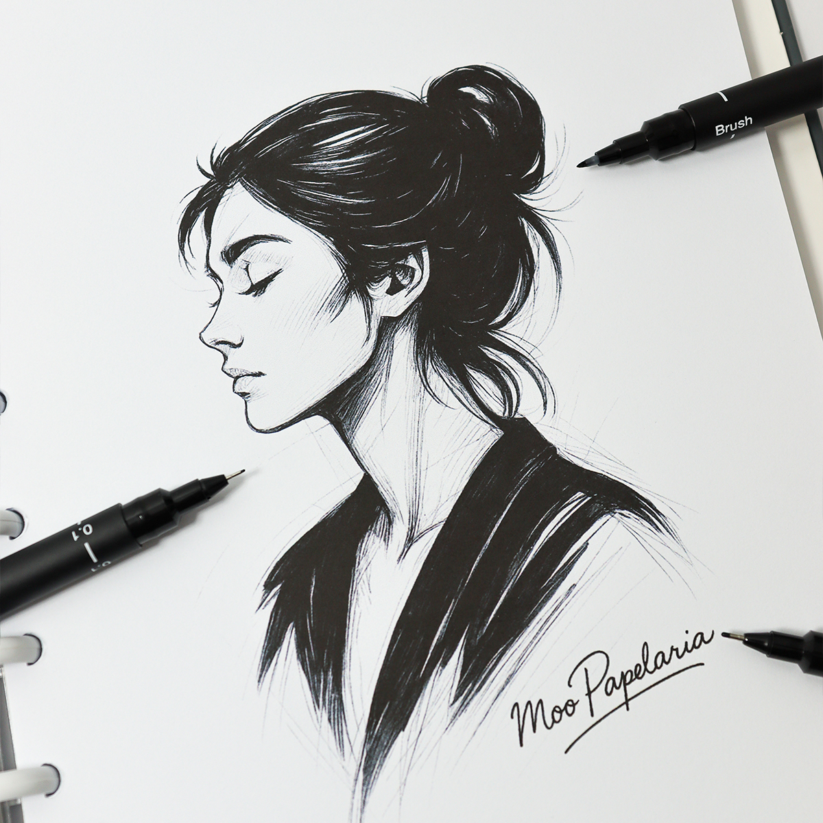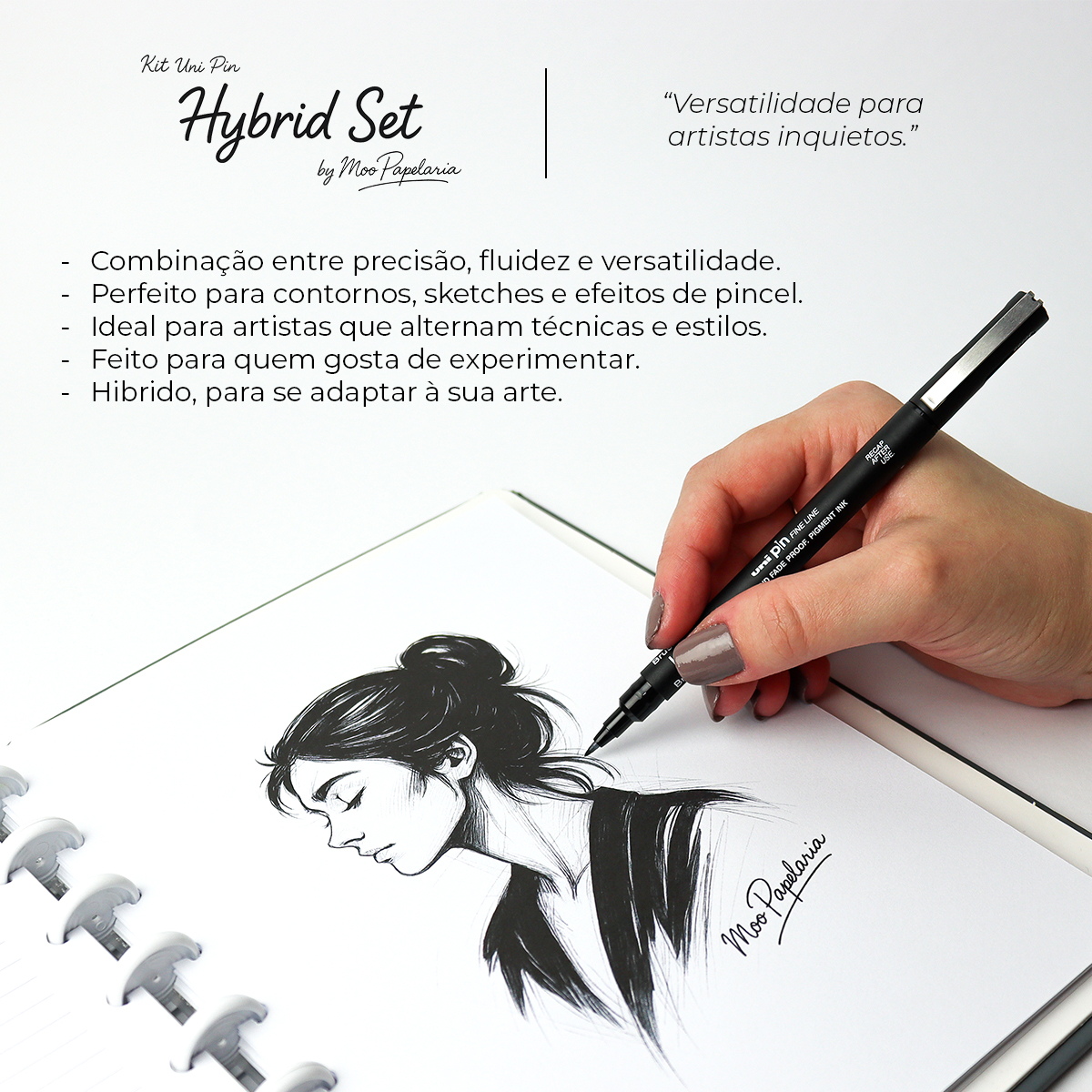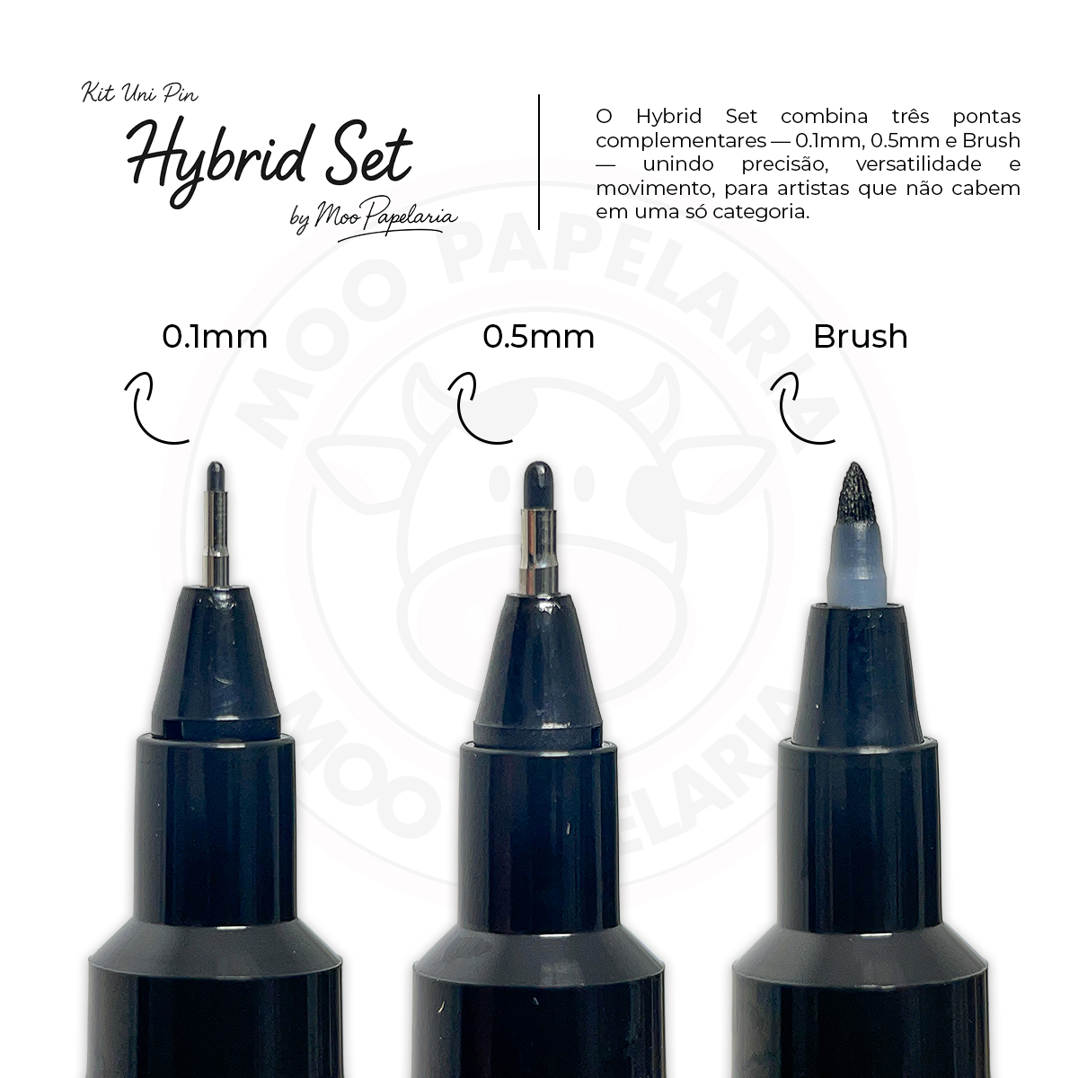 Kit Caneta Técnica Uni Pin Fine Line uni-ball – Hybrid Set – 0.1mm + 0.5mm + Brush – Kit 3 UN