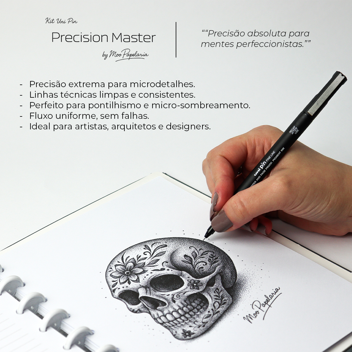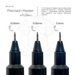 O Precision Master traz as três pontas mais finas da Uni Pin — 0.03mm, 0.05mm e 0.1mm — oferecendo controle absoluto para trabalhos que exigem delicadeza máxima. Ideal para microdetalhes, pontilhismo, linhas técnicas, arte realista e contornos precisos. Um kit criado para artistas e profissionais que valorizam perfeição em cada traço.