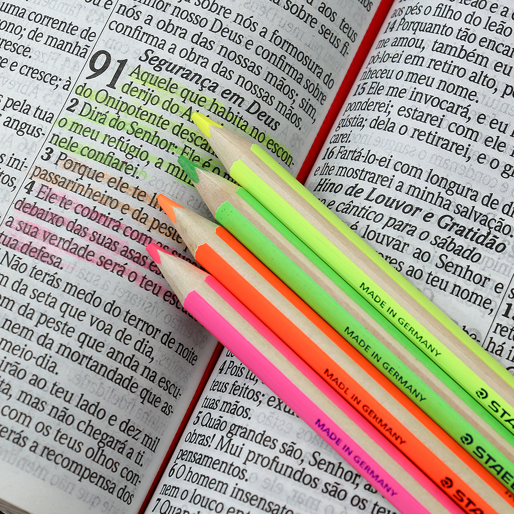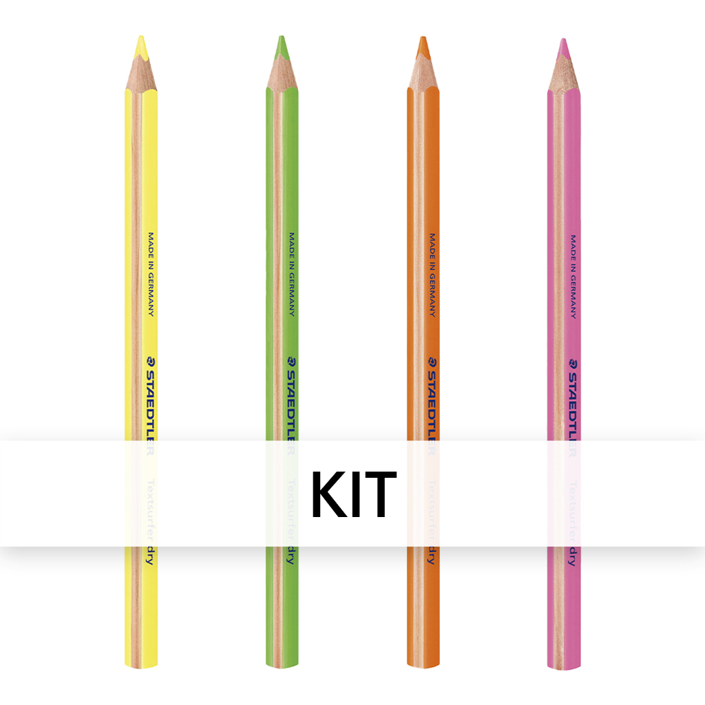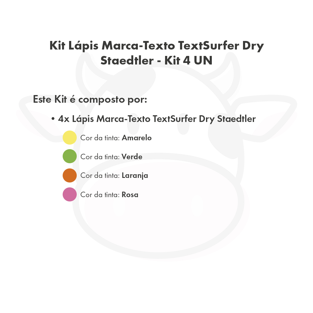 1 Kit do Lápis Marca-Texto TextSurfer Dry Staedtler com 4 unidades nas cores: Amarelo Neon, Rosa Neon, Laranja Neon e Verde Neon.