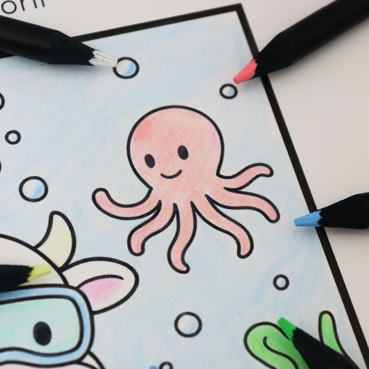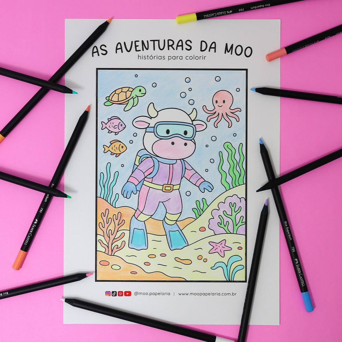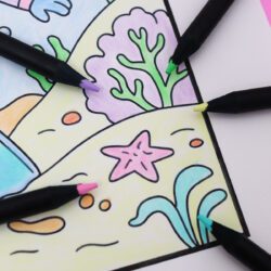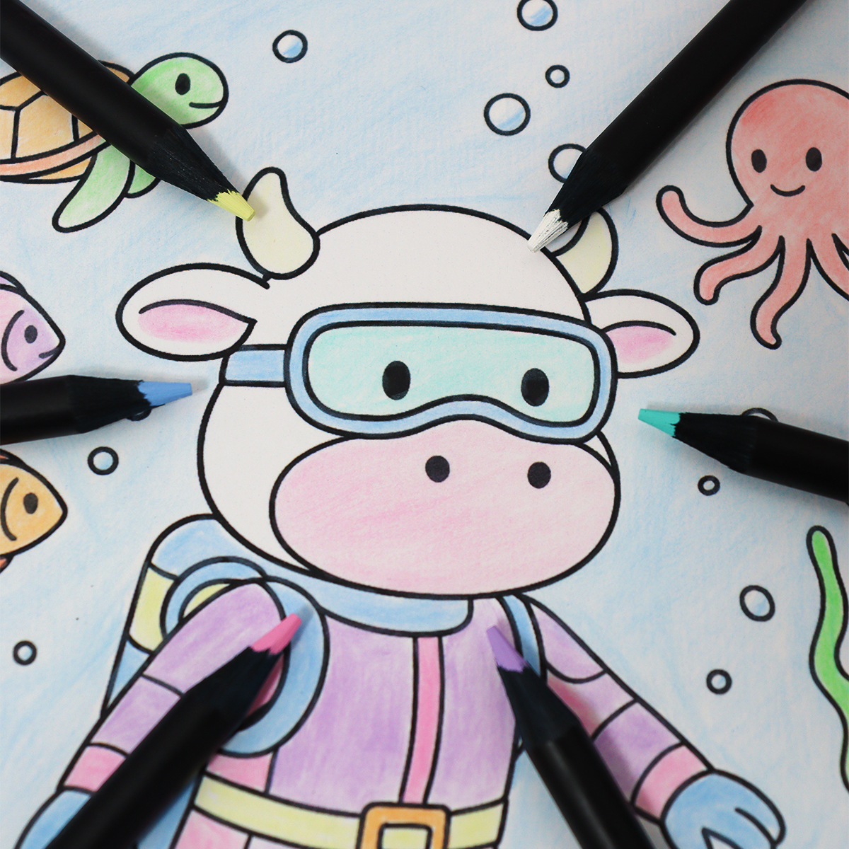 – 10 Cores Pastel + 1 Lápis de Cor Branco + 1 Lápis de Cor Preto.