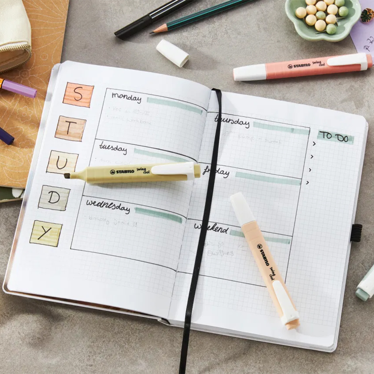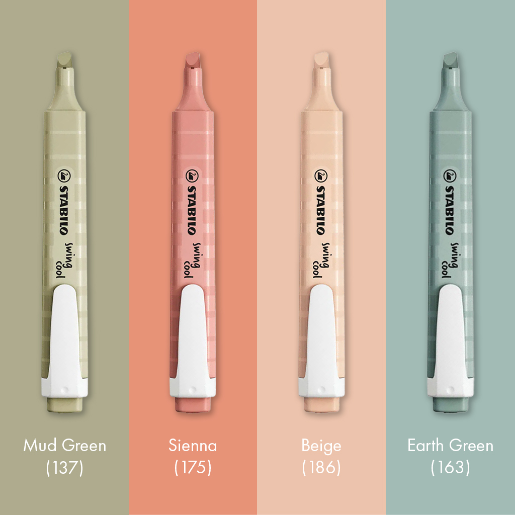 1 Estojo do Marca-Texto Swing Cool Stabilo – Nature Colors – com 4 unidades.
