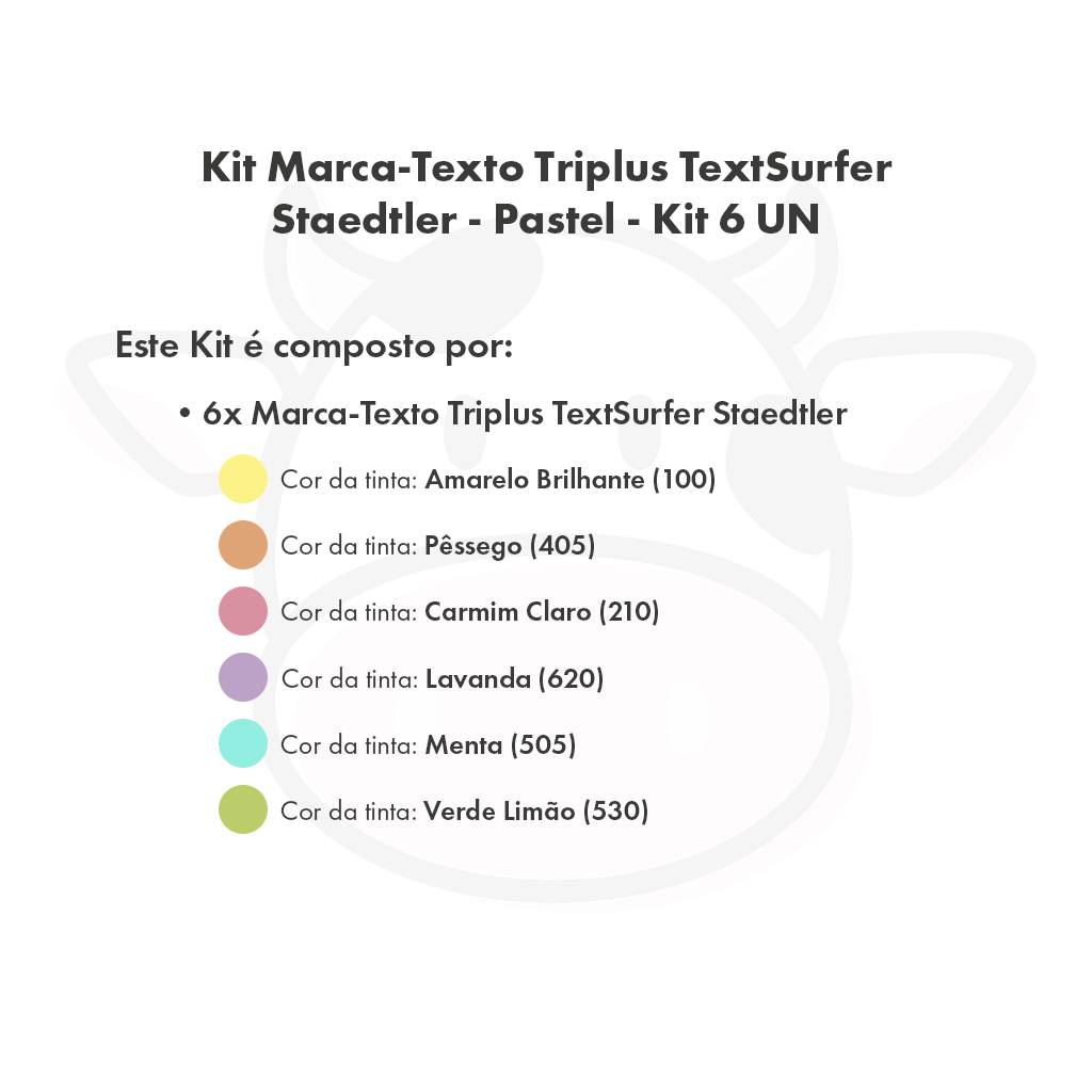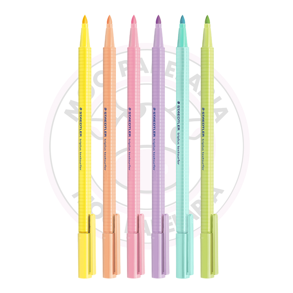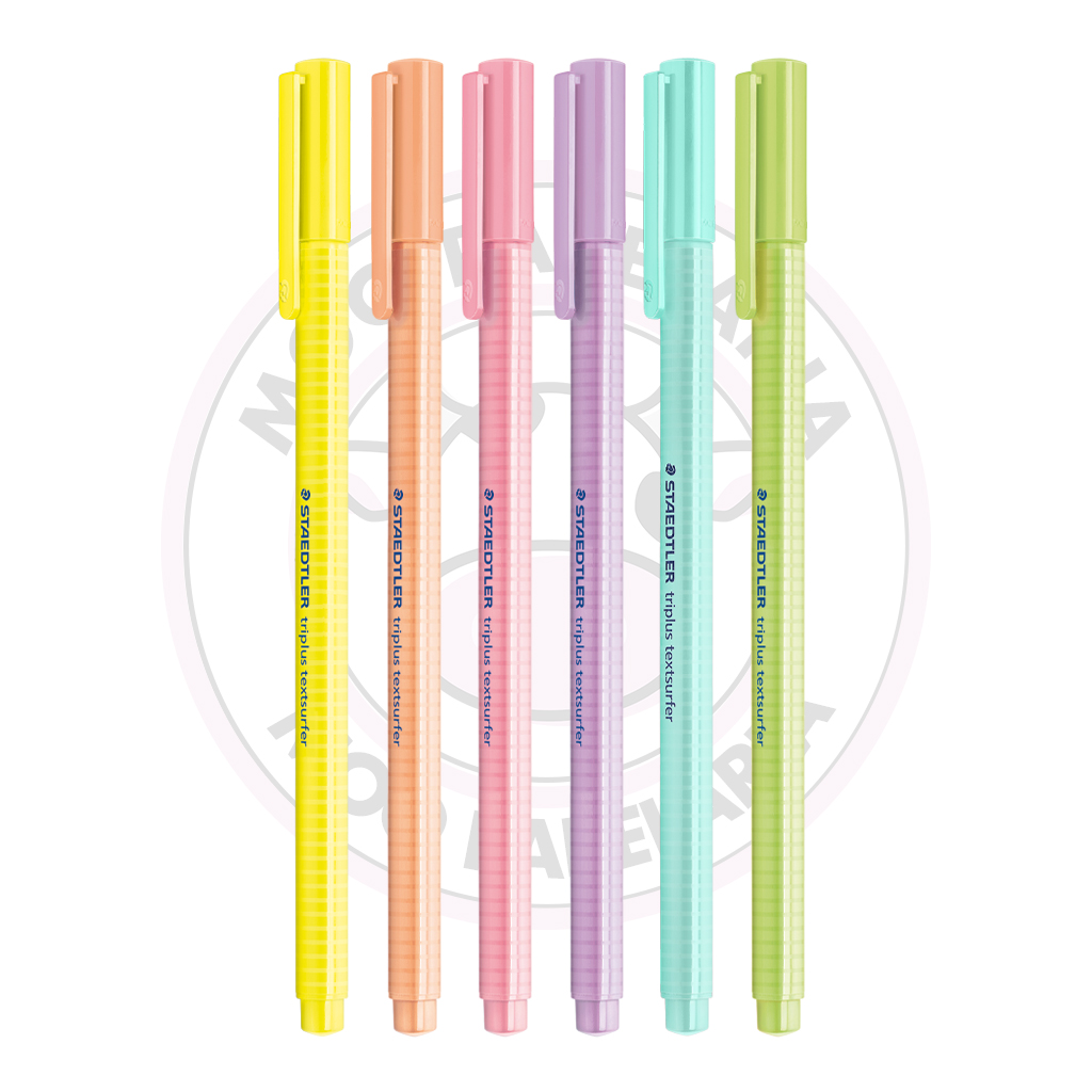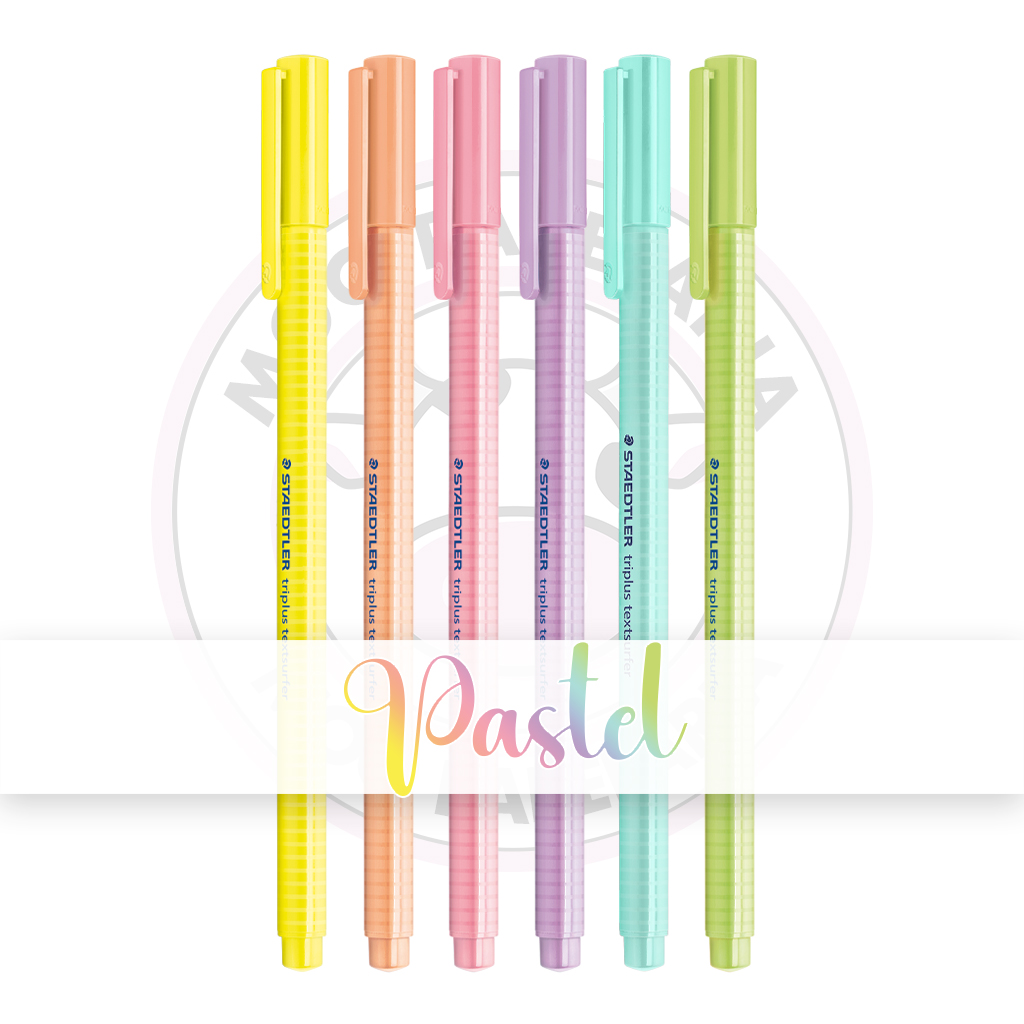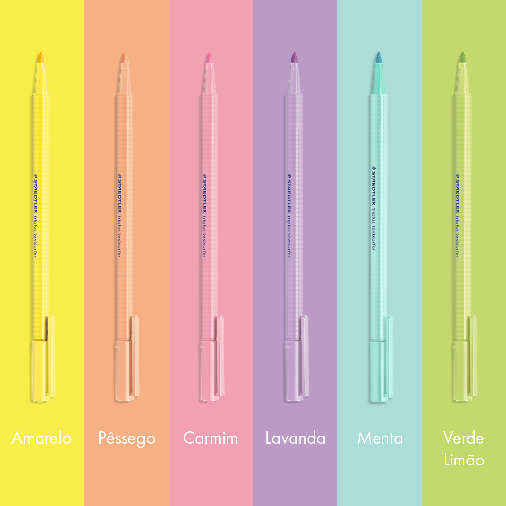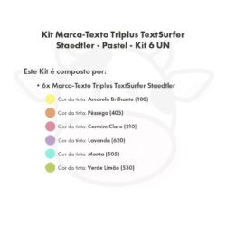 Esse Kit é composto por 6 Marca-Texto Triplus Highlighter TextSurfer Staedtler – Pastel – nas cores: